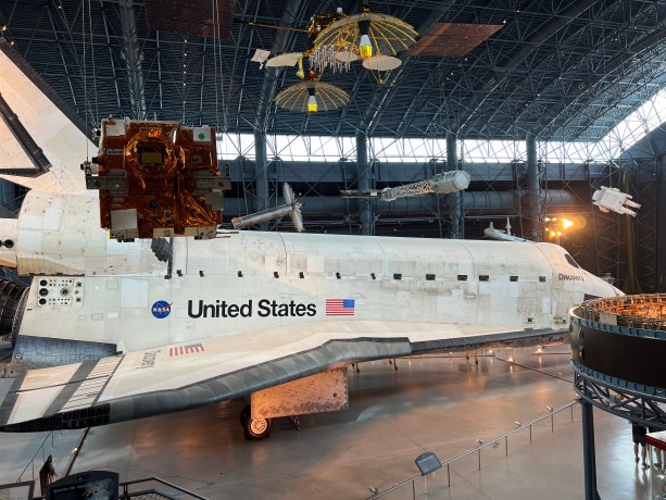 The space shuttle Discovery is on display at the site: The shuttle is in a giant room that houses other space related equipment. There is also an interactive monitor where a live person will interact, describe the shuttle, and answer questions about it. It is by far one of my favorite parts of the museum.